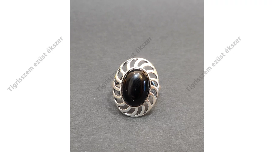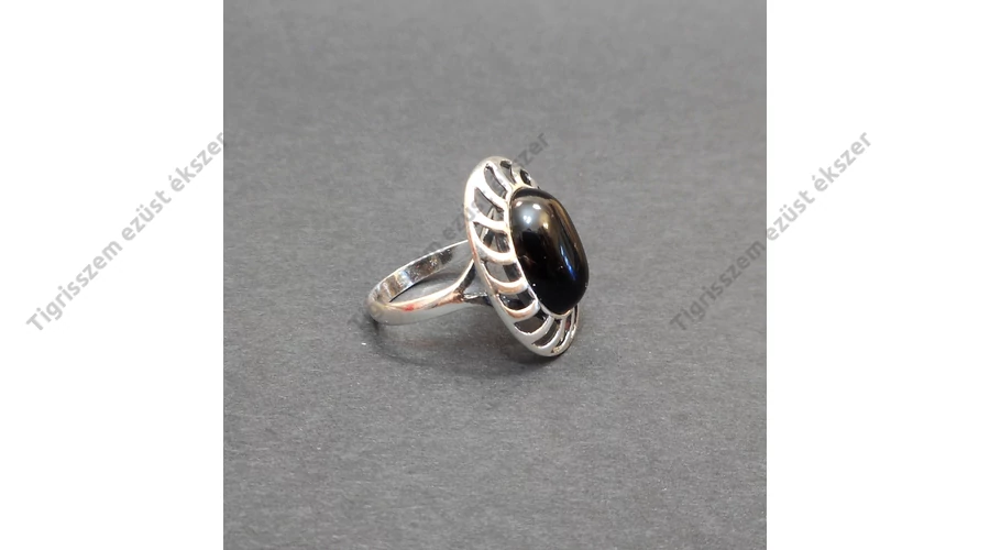 | Gyönyörű női ezüst gyűrű onix kővel díszítve. Minőségi kidolgozás, 925-ös finomság. Magyar fémjellel ellátva. | |