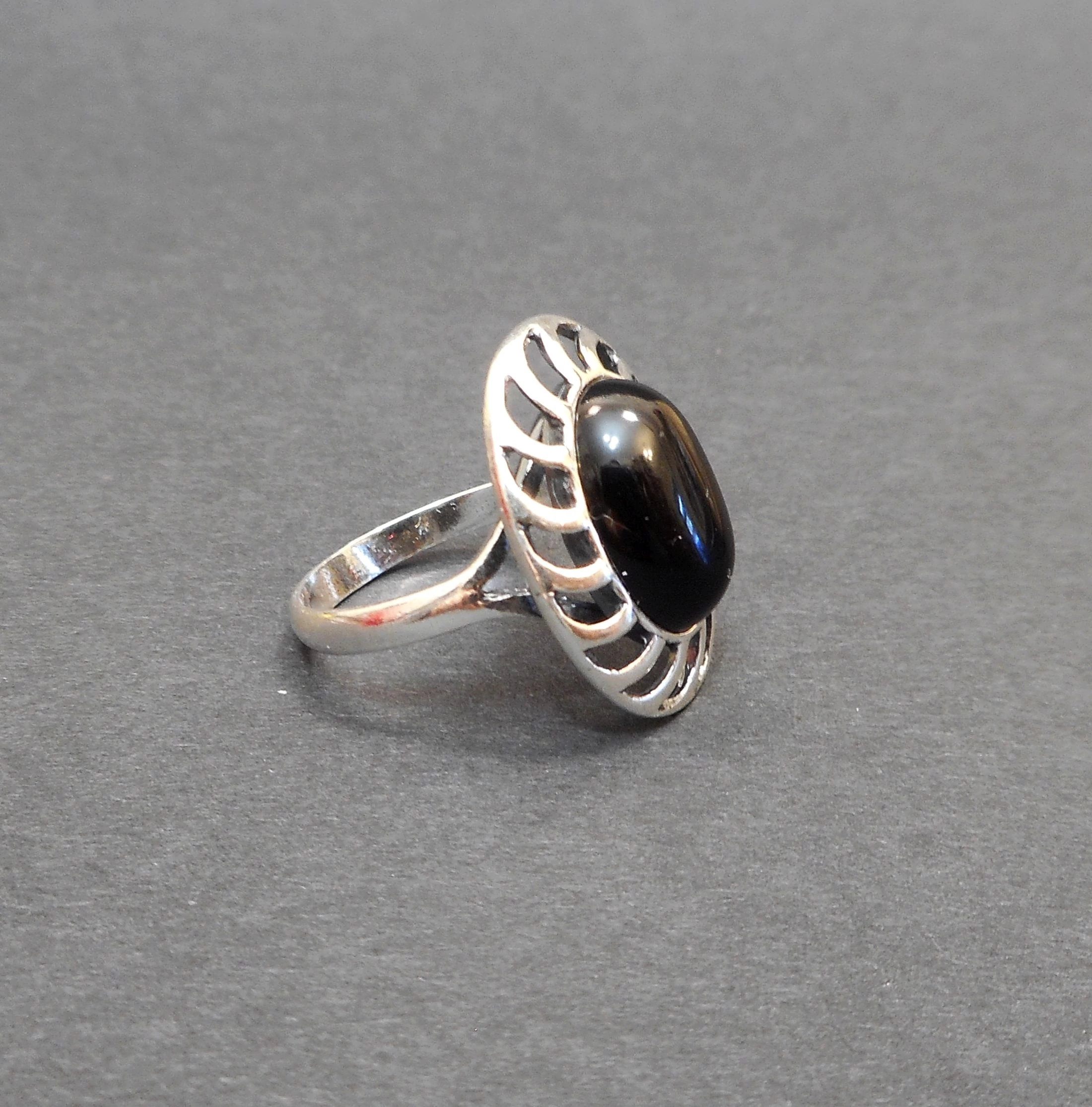 | gyűrű mérete | 56 (belső átmérő 15mm) Kő méret:10x14mm Anyag:925-ös finomságú ezüst Kő színe, fajtája:onix,fekete |