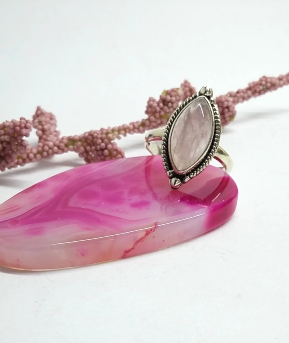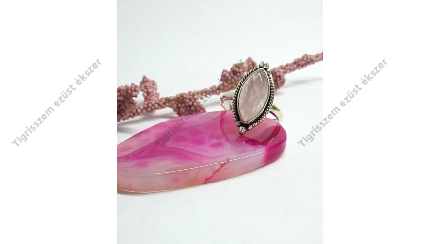 Ezüst női gyűrű rózsakvarc kővel 60--as