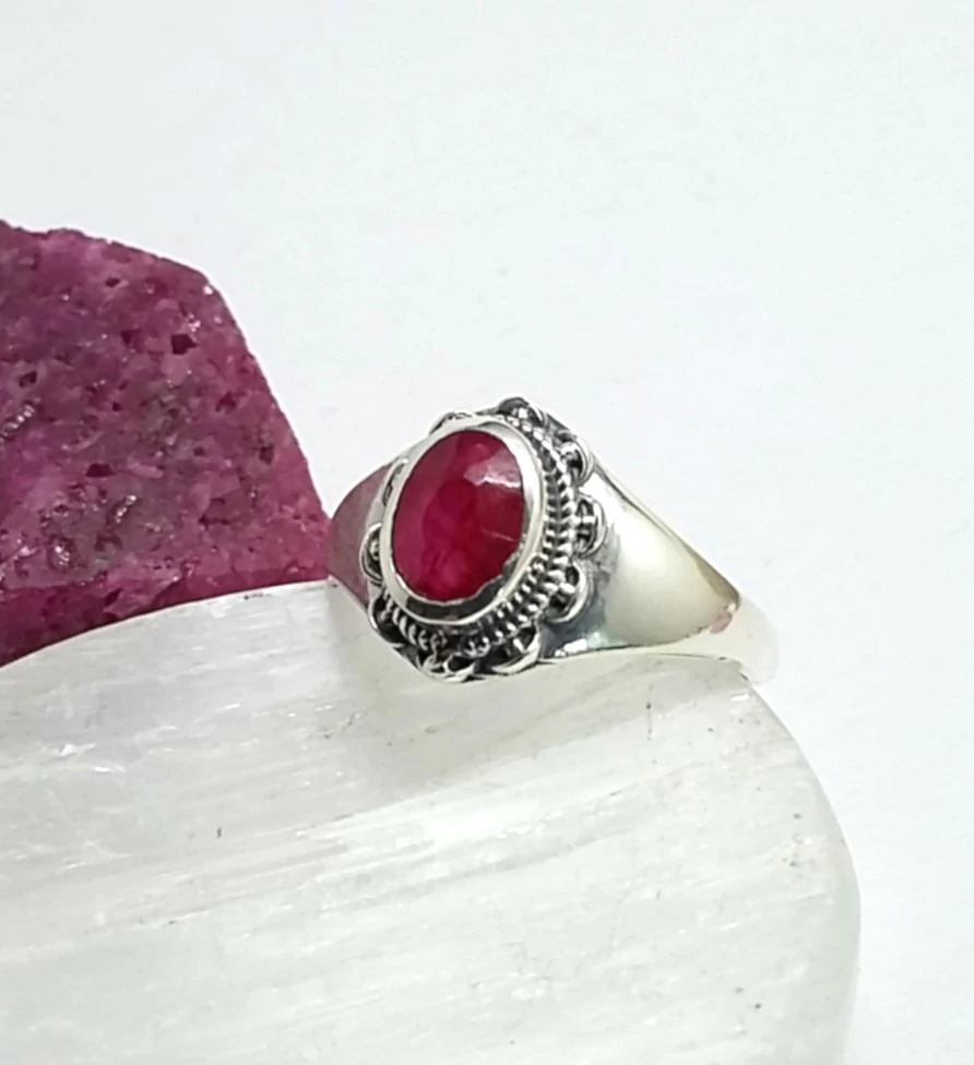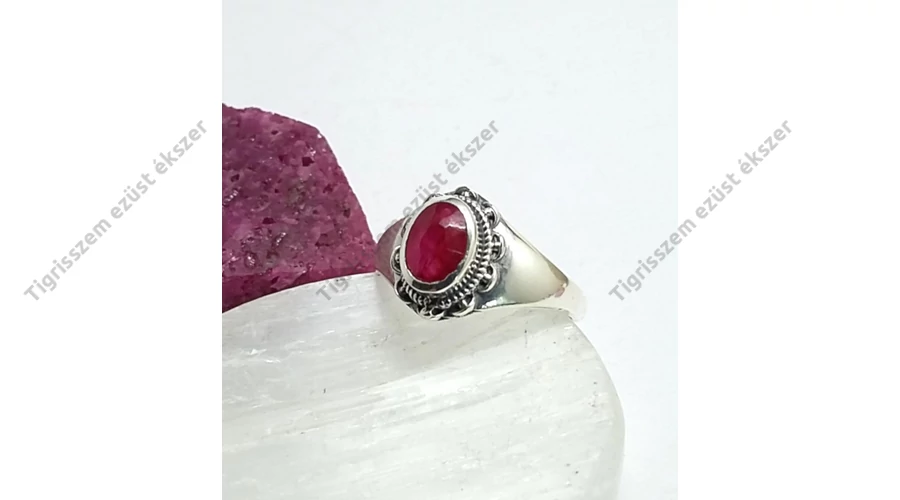 Gyönyörűen kidolgozott, különleges, VALÓDI rubin köves ezüst gyűrű. Antikolt 54-es méret Minőségi kidolgozás.Magyar fémjel. 925-ös sterling ezüst |