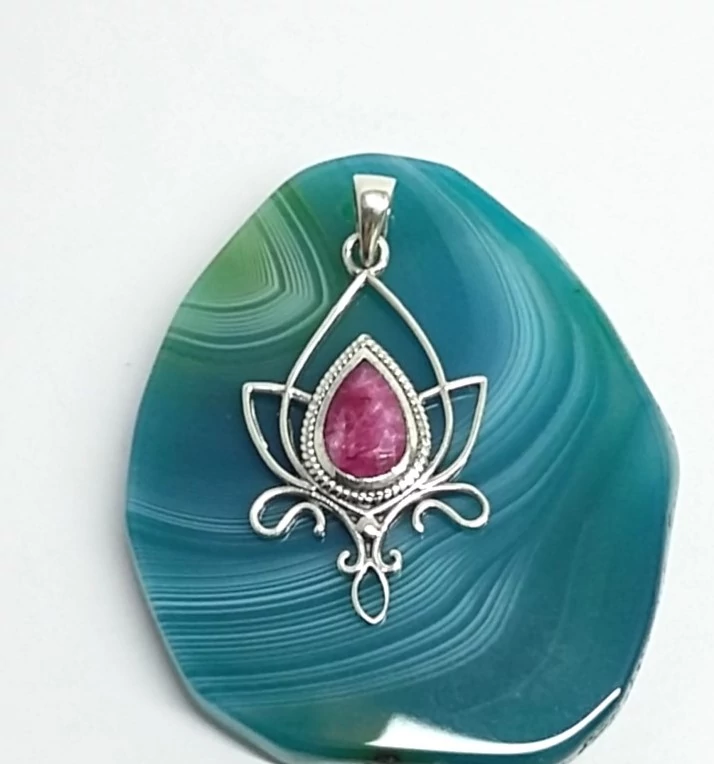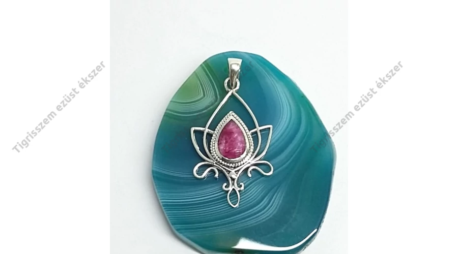 Gyönyörűen kidolgozott, különleges, VALÓDI rubin köves ezüst medál,lótusz. Minőségi kidolgozás.Magyar fémjel. 925-ös sterling ezüst