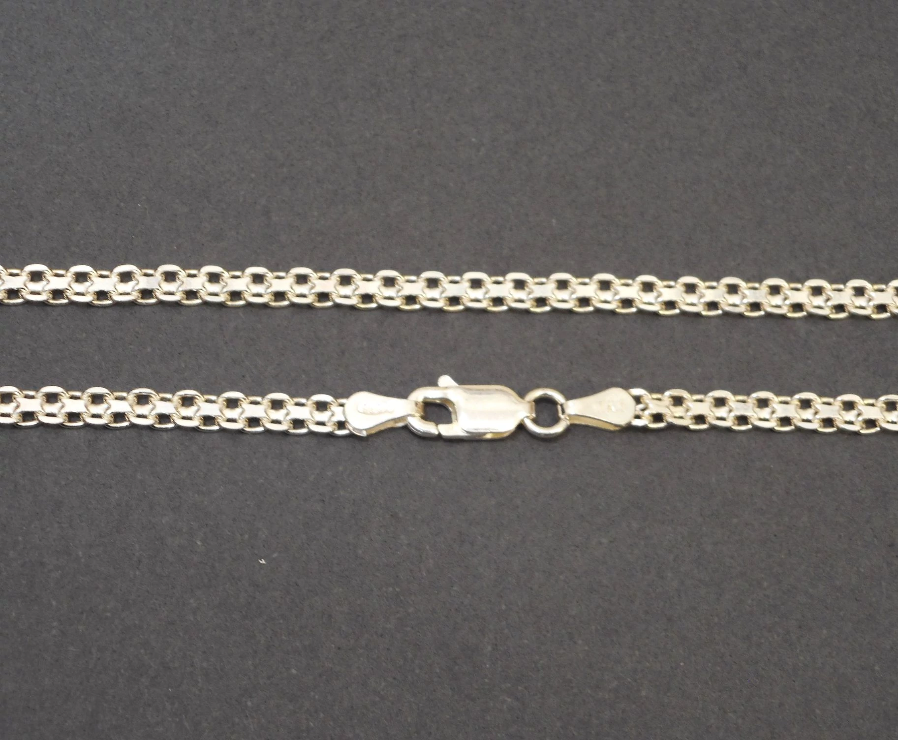 | Gyönyörűen kidolgozott női ezüst lánc,bismark minta. Hossza:40cm Minőségi kidolgozás. 925-ös finomság. Magyar fémjellel ellátva. | |
