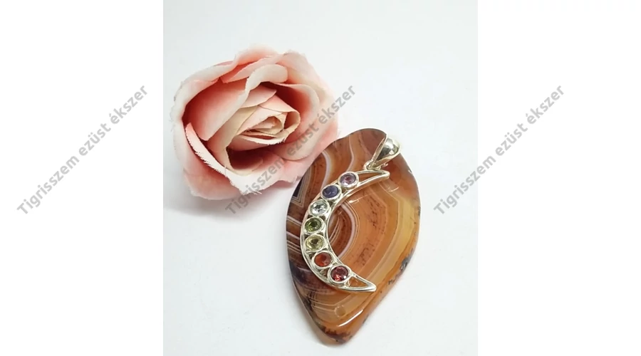 Gyönyörű,különleges HOLD forma ezüst medál  a " 7 csakra" köveivel.Fazettára csiszolt drágakő minőségű 3 mm-s kövek.